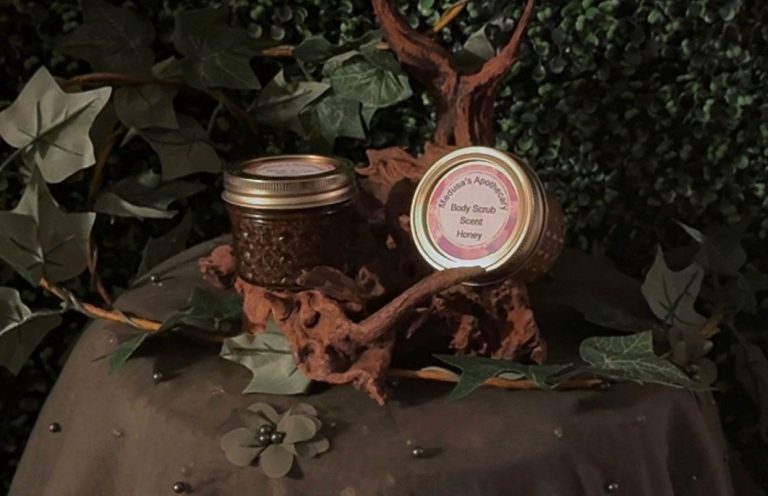 Honey scented scrub is made with cane sugar infused with non-scented baby body wash, honey and coconut oil.